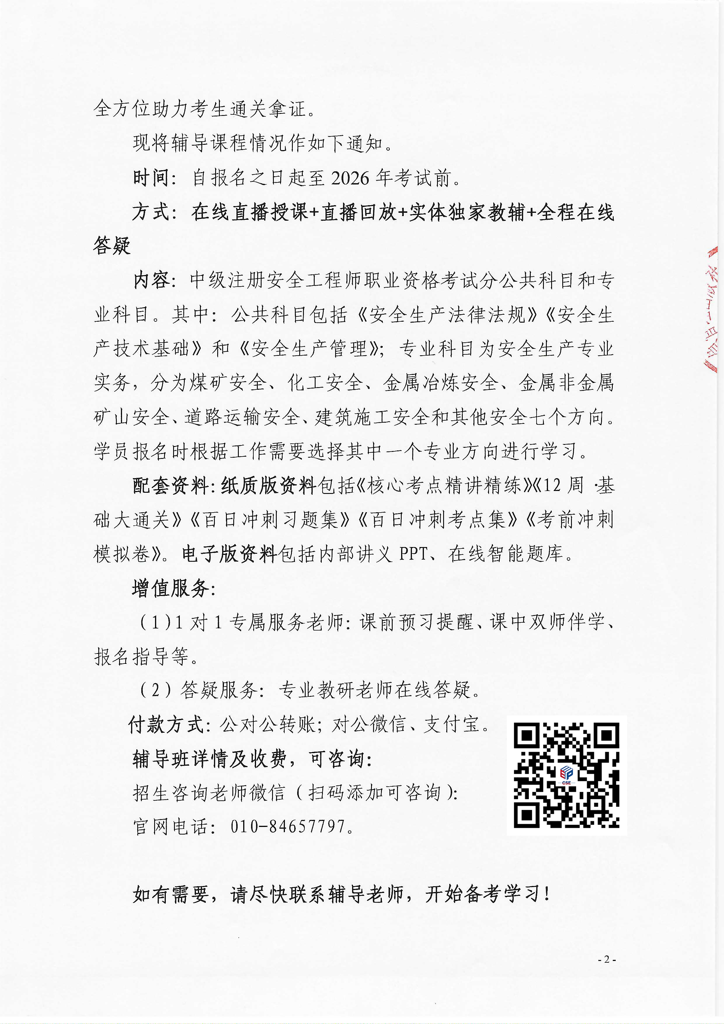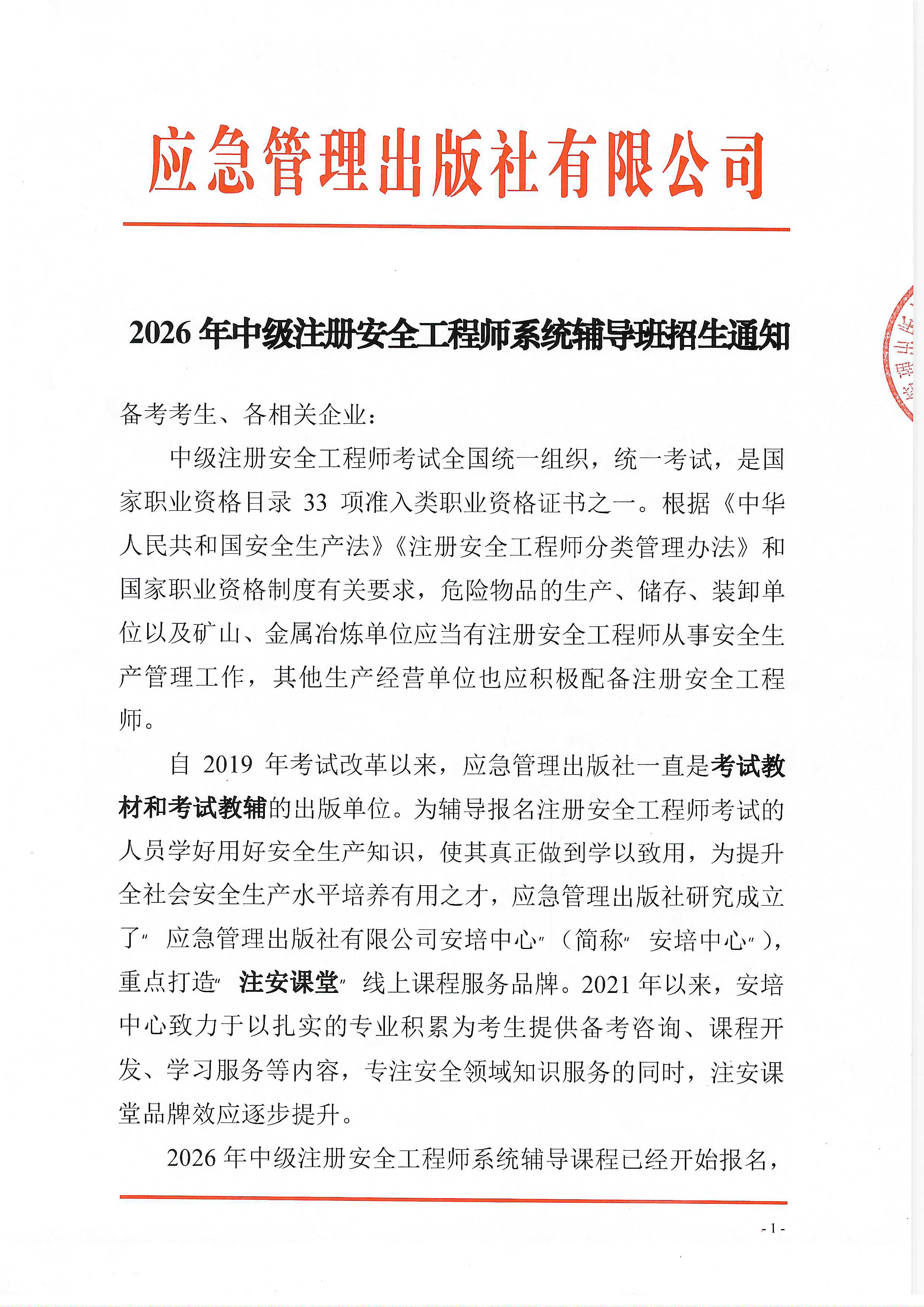 应急管理出版社2026中级注册安全工程师系统辅导班招生通知